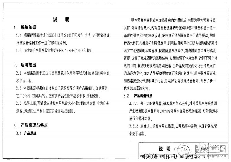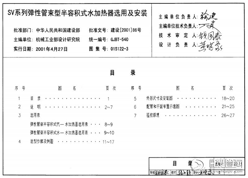01S122-3SV系列弹性管束型半容积式水加热器选用及安装