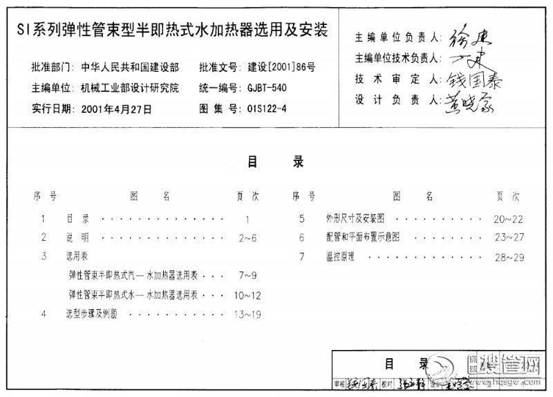 01S122-8TGT系列浮动盘管型半即热式水加热器选用及安装