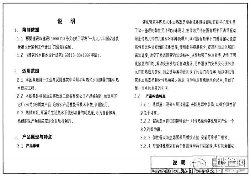 01S122-3SV系列弹性管束型半容积式水加热器选用及安装