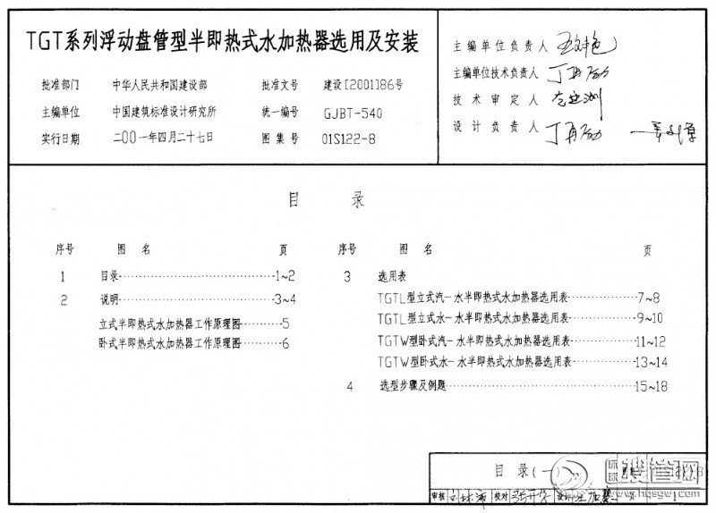 01S122-8TGT系列浮动盘管型半即热式水加热器选用及安装