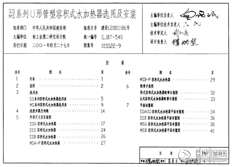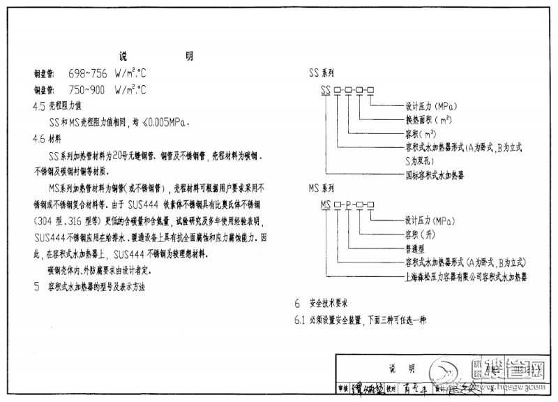 01S122-9SS、MS系列U形管型容积式水加热器选用及安装