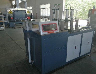 左右冲头由一支液压缸通过机械联动机构驱动,实现两冲头工作刚性同步进给,避免组角过程的无益变形,使门窗角连接更牢固。